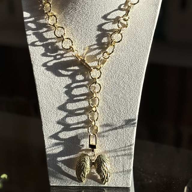 • Dije Central: Un par de alas de ángel con relieve detallado, simbolizando libertad y protección.