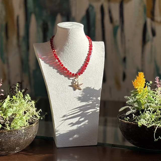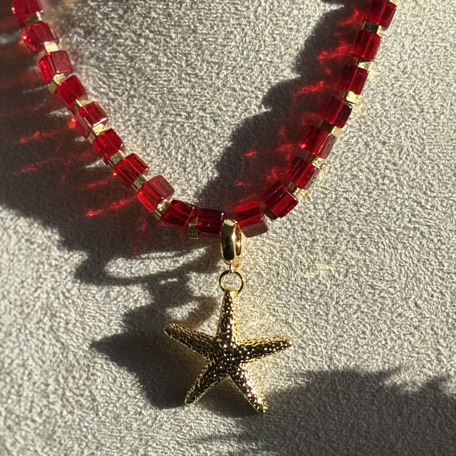 Dije: Estrella de mar texturizada, finamente enchapada en oro, que aporta un toque orgánico y sofisticado.