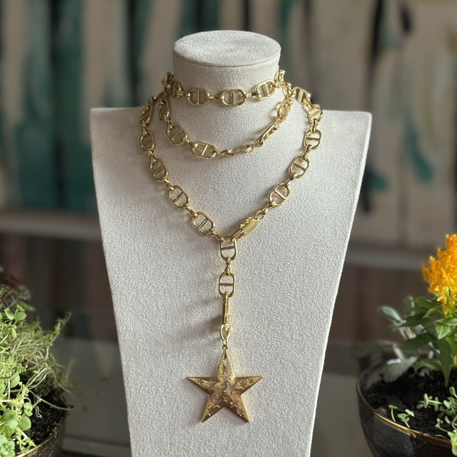 Una pieza delicada y luminosa, enchapada en oro 18K y diseñada con una cadena protagonista de eslabón fino. Su dije de estrella aporta un brillo sutil que realza cualquier look, combinando elegancia moderna con un estilo atemporal. Perfecto para usar solo o en capas, y para acompañarte en cada momento.