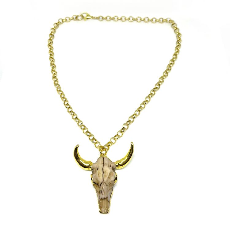 Collar Toro, joya de acero quirúrgico bañado en oro de 18 k, largo 50 cm
